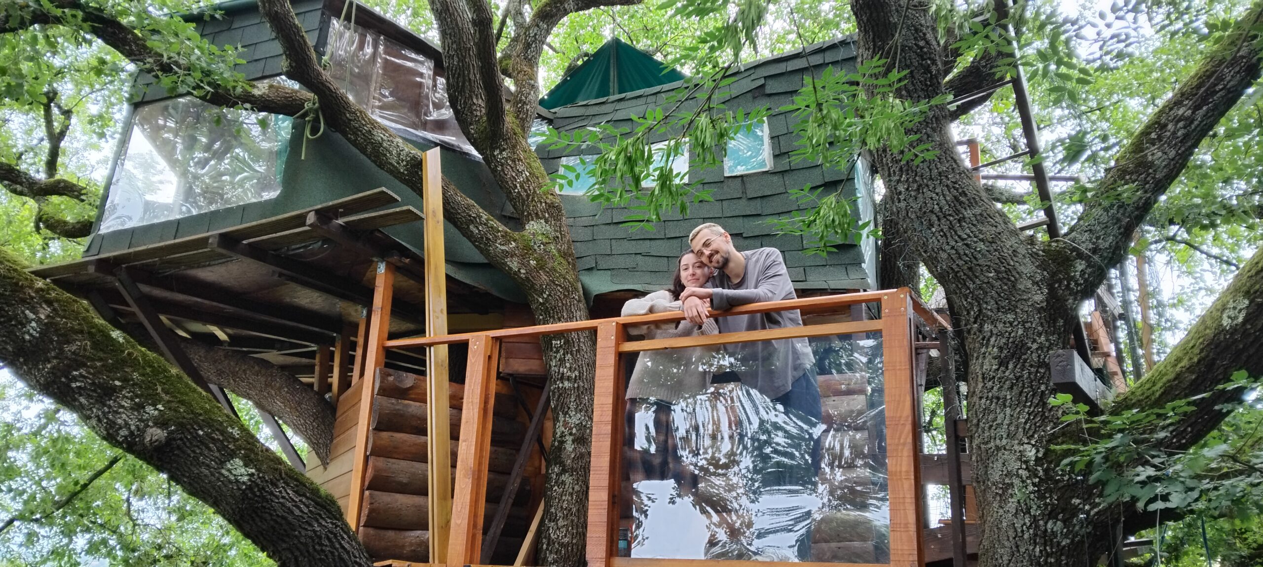 A unique experience to live and relive! Thank you Stéphane and Christian for your more than generous welcome, your attentions, your kindness… Your great humanity which makes us feel at home! And this extraordinary tree house, made by passionate hands! A great success! We spent a moment out of time perched ten metres high and you can be sure that we will be back! Thank you for everything! You are magnificent! Virginie, Julien, Sasha and Robin
