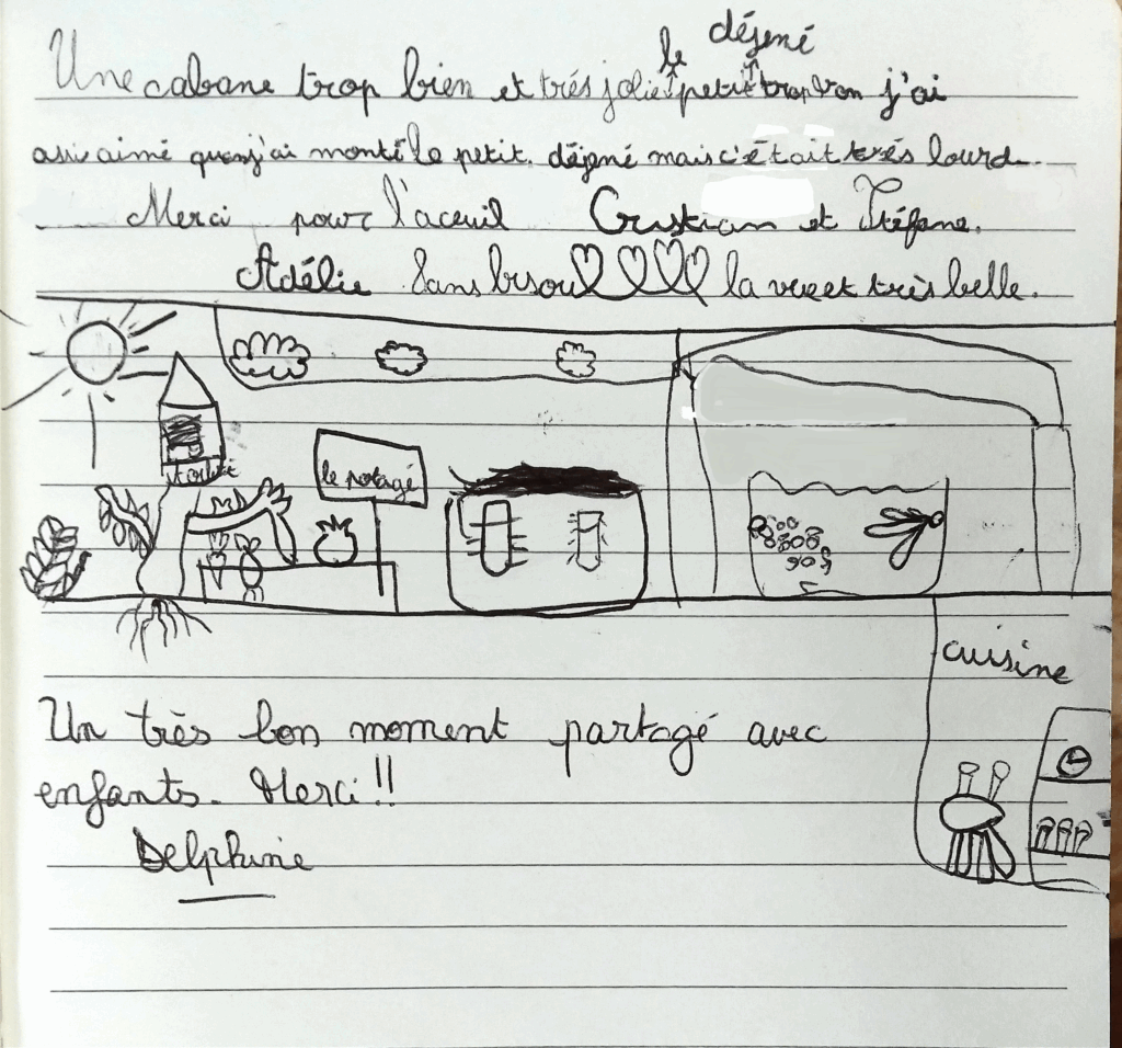 Le 27 mai: Merci à Romain et ses enfants d’être venus à la Cabane insolite: